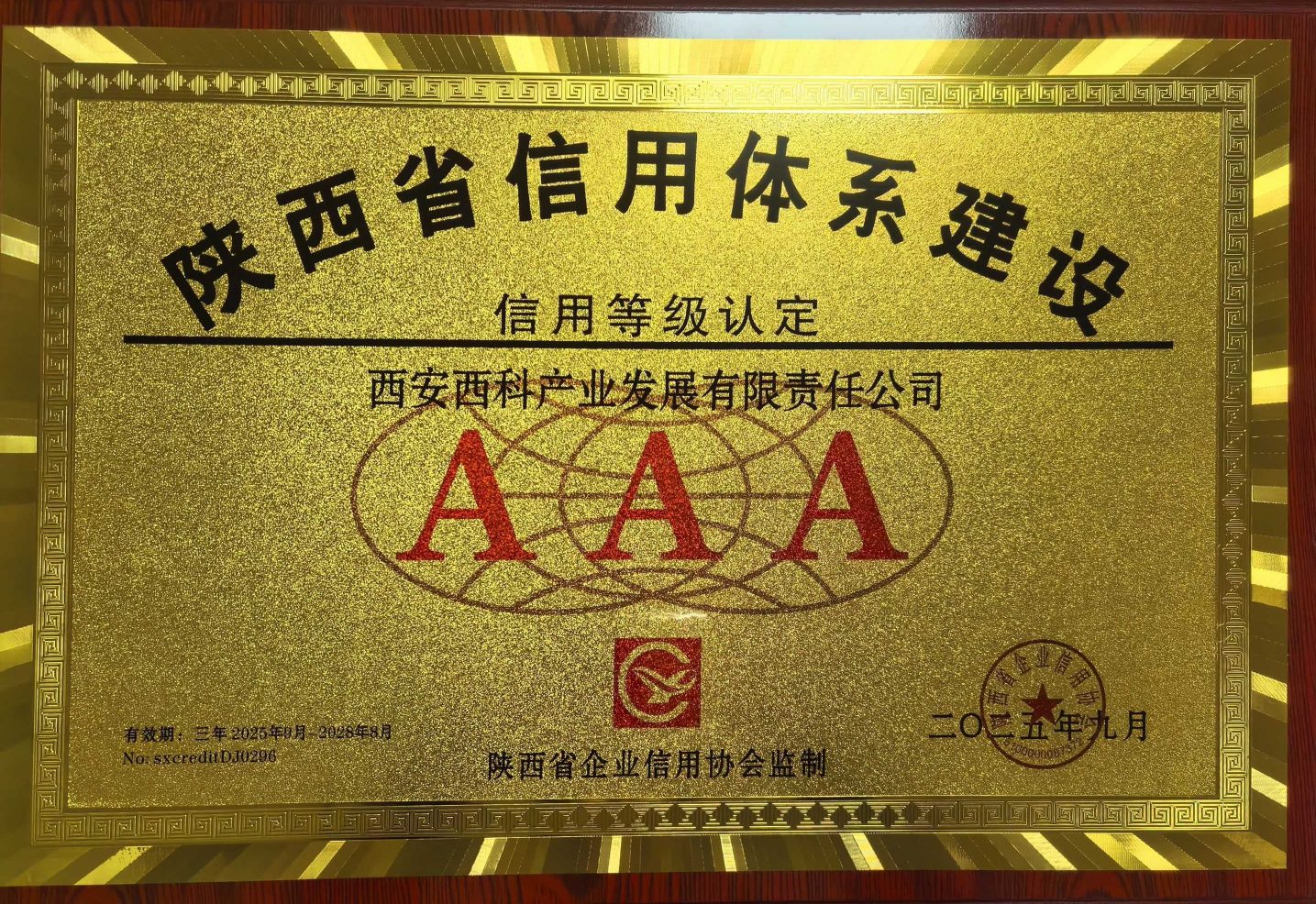近日,西科产业公司成功获得“AAA”企业信用等级资质,这标志着公司在企业信用建设和社会信用评价方面迈上新台阶。
